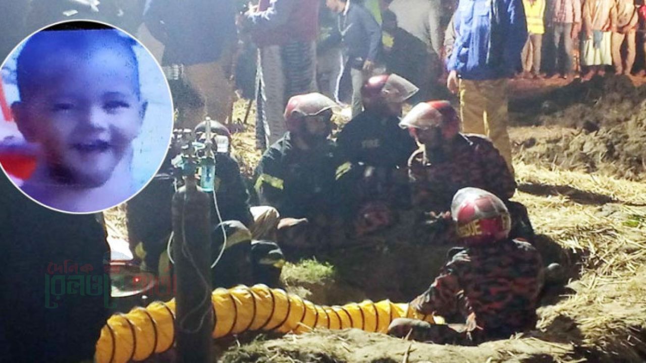 স্থানীয় সূত্রে জানা গেছে, বুধবার দুপুরে জমি থেকে মাটি নিয়ে আসার সময় একটি ট্রলি আটকে যায়। রাকিব ও তার স্ত্রী তাদের দুই বছরের ছেলেকে নিয়ে মাটিতে গেঁথে যাওয়া ট্রলিকে দেখতে যান। শিশুটি তার মায়ের কোল থেকে নেমে জমির মধ্যে হাঁটছিল। কোনো এক সময় পরিত্যক্ত গভীর নলকূপের ওই গর্তে পড়ে যায় সে।
