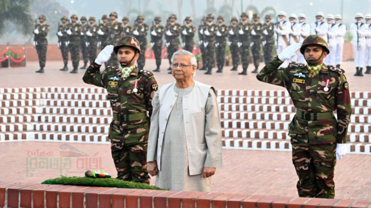 মহান বিজয় দিবসে জাতীয় স্মৃতিসৌধে বীর শহীদদের প্রতি শ্রদ্ধা জানিয়েছেন প্রধান উপদেষ্টা ড. মুহাম্মদ ইউনূস।
